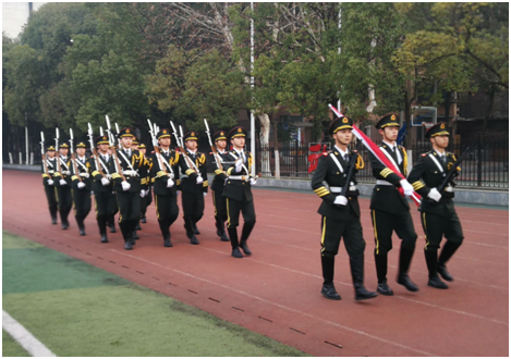 7:00,升旗仪式活动第一项,主持人宣布国旗升旗仪式正式开始。永利官网国旗护卫队旗手们手握着国旗、穿着统一的军装,迈着整齐的步伐朝升旗台走来。随着升旗手振臂一挥,鲜艳的五星红旗伴随着高昂的中华人民共和国国歌冉冉升起,全院师生行注目礼。