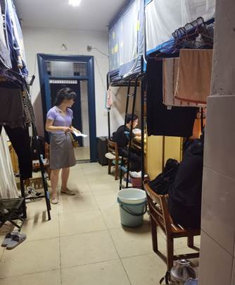 本次查寝一是检查员工是否安全返校,二是了解员工寝室是否存在安全隐患。查寝过程中,老师发现员工基本安全返校、寝室干净整洁,部分员工寝室浓郁的学习氛围让查寝的领导和老师都感到欣慰。张鑫老师在走访过程中还亲切地与员工交谈,询问毕业年级就业情况、二战情况以及寝室是否存在安全隐患并将员工的情况进行了详细的记录,叮嘱员工注意用电安全和财产安全并鼓励员工积极找工作,努力备考争取二战上岸。